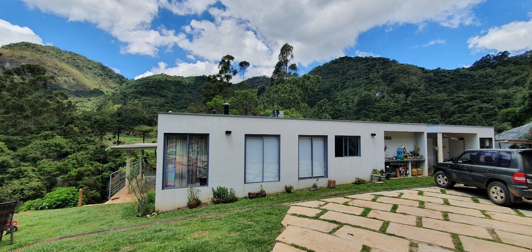 Linda propriedade em um dos bairros mais valorizados de Gonçalves, o Campestre! Casa com arquitetura contemporânea, medindo 172m² em um terreno de 20.986m², escriturado e registrado no Cartório de Registro de Imóveis de Paraisópolis-MG e com georreferenciamento realizado. Sala com lareira, integrada a uma cozinha com fogão à lenha. Janelas e panos de vidro dividem o ambiente para um deck maravilhoso que se debruça sobre um gramado ornamentado por pedras naturais e vista da mata. Possui 3 quartos, sendo 1 suíte com hidromassagem e 1 banheiro social. Um rio serpenteia a propriedade em 400 metros da sua divisa. Uma bela trilha permeia a propriedade. Possui horta e algumas árvores frutíferas. Água de nascente própria. Pega celular e internet. Apenas 9km do centro de Gonçalves, com fácil acesso e estrada 50% bloquetada. Valor: R$ 2.200.000,00